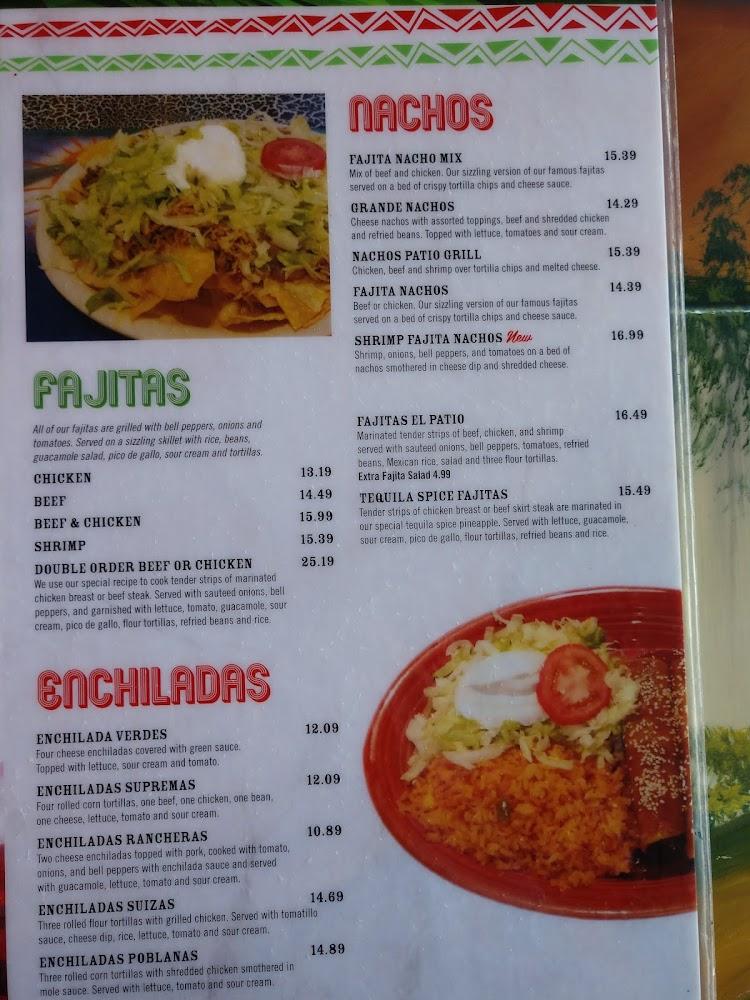 The menu at El Patio is diverse and appealing. It features appetizers, entrees, and desserts that captivate diners. Signature items include the fajita quesadilla and various street tacos. Vegetarian options cater to different dietary needs, while the kids' menu ensures everyone is satisfied. Classic dishes like enchiladas and nachos also shine. Each dish showcases authentic flavors and quality ingredients. The prices range from $10-$20, making it affordable for many. With 93 total dishes to choose from, there’s something for everyone, from casual diners to food enthusiasts.